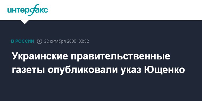 Москва. 22 октября. INTERFAX.RU - Газеты Верховной Рады и кабинета министров "Голос Украины" и "Урядовый курьер" опубликовали в среду указ президента Украины Виктора Ющенко о приостановлении действия указа от 9 октября о досрочном прекращении полномочий парламента и назначении внеочередных парламентских выборов.