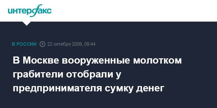 В Москве вооруженные молотком грабители отобрали у предпринимателя сумку денег