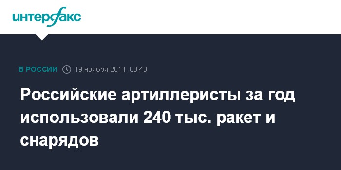 Москва. 19 ноября. INTERFAX.RU - В ходе тактических учений в 2014 году было израсходовано около 240 тысяч штук артиллерийских боеприпасов, сообщил начальник ракетных войск и артиллерии (РВиА) Сухопутных войск генерал-майор Михаил Матвеевский.