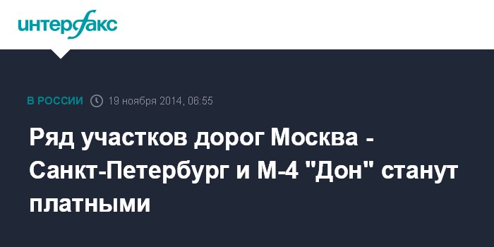 Ряд участков дорог Москва - Санкт-Петербург и М-4 "Дон" станут платными