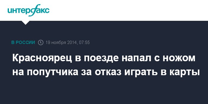 Красноярец в поезде напал с ножом на попутчика за отказ играть в карты