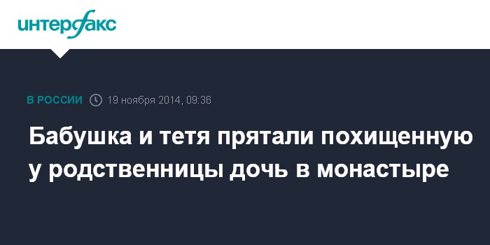 Бабушка и тетя прятали похищенную у родственницы дочь в монастыре