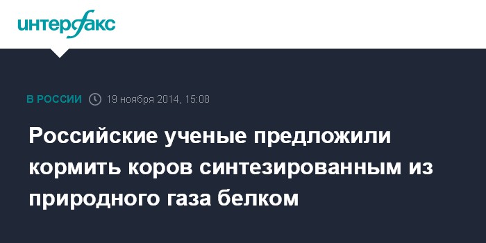 Москва. 19 ноября. INTERFAX.RU - Ученые предложили воспользоваться газопроводами, чтобы синтезировать из газа дешевый кормовой белок для прокорма скота и подъема российского животноводства.