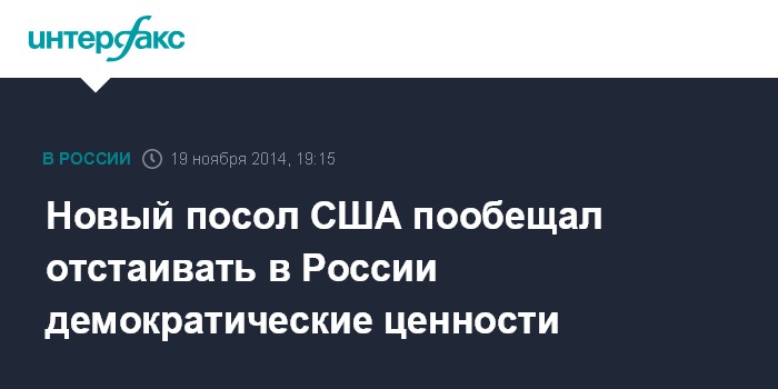 Новый посол США пообещал отстаивать в России демократические ценности