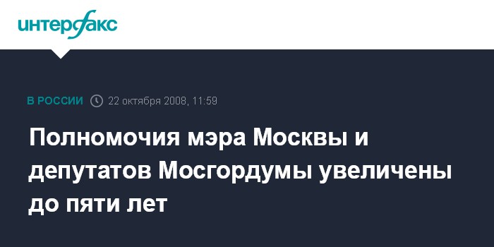 Полномочия мэра Москвы и депутатов Мосгордумы увеличены до пяти лет