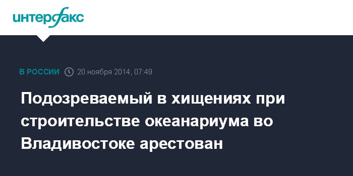 Подозреваемый в хищениях при строительстве океанариума во Владивостоке арестован