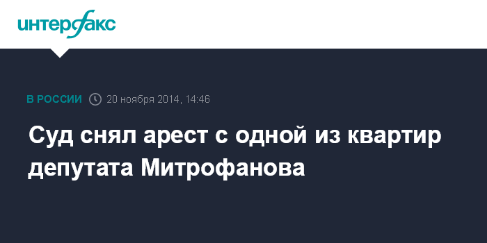 Москва. 20 ноября. INTERFAX.RU - Дорогомиловский суд Москвы постановил снять арест с одной из квартир депутата Госдумы Алексея Митрофанова в рамках рассмотрения иска вдовы самарского бизнесмена Олега Дергилева.