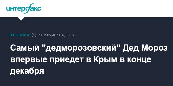 Москва. 20 ноября. INTERFAX.RU - Республика Крым ожидает в конце декабря приезд Деда Мороза из Великого Устюга, сообщила министр курортов и туризма Крыма Елена Юрченко.