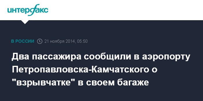 В свою очередь, пресс-секретарь Камчатского ЛО МВД России на транспорте Наталья Аберясева сообщила "Интерфаксу", что оба сообщения о бомбах в багаже оказались ложными.