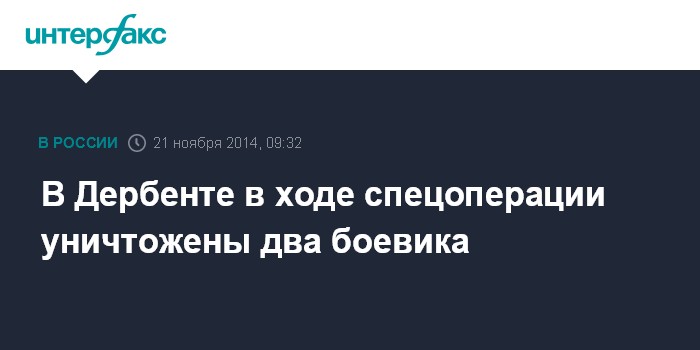 Москва. 21 ноября. INTERFAX.RU - Двое подозреваемых в участии в незаконных вооруженных формированиях уничтожены при оказании вооруженного сопротивления в Дербенте, сообщил агентству "Интерфакс" источник в правоохранительных органах Дагестана.