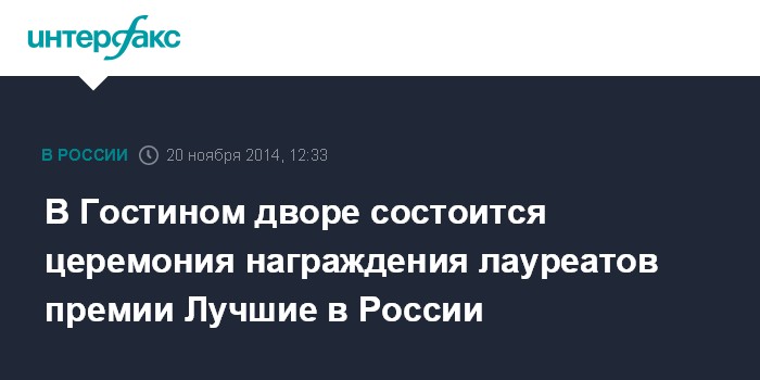 Москва. 20 ноября. INTERFAX.RU - 25 ноября в Гостином дворе состоится церемония награждения лауреатов ежегодной премии публичной активности Лучшие в России/Best.ru