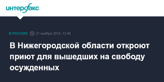 Москва. 21 ноября. INTERFAX.RU - Первый в России приют для вышедших на свободу осужденных появится в Нижегородской области в частном доме, предоставленном местным жителем, сообщили в пресс-бюро ФСИН.