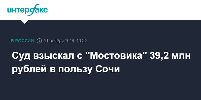 Суд взыскал с "Мостовика" 39,2 млн рублей в пользу Сочи