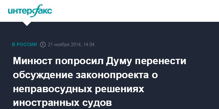 Минюст попросил Думу перенести обсуждение законопроекта о неправосудных решениях иностранных судов