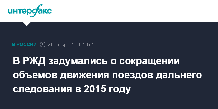 Ранее президент РЖД Владимир Якунин заявлял, что по итогам 2014 г. РЖД ожидают падения пассажирских перевозок в поездах дальнего следования на 9%. При этом он также отмечал, что на общее падение перевозок существенно влияет сокращение пассажирских перевозок (на 60%) в сообщении с Украиной.