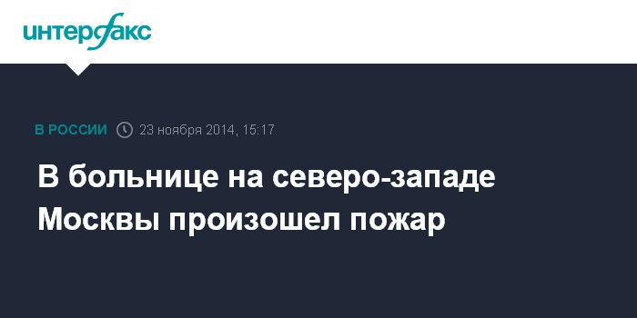 Москва. 23 ноября. INTERFAX.RU - Возгорание произошло в одном из корпусов городской больницы №52 на северо-западе столицы, сообщил "Интерфаксу" источник в правоохранительных органах.