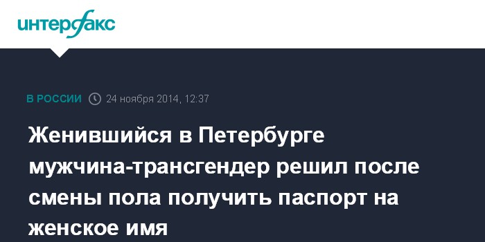 Женившийся в Петербурге мужчина-трансгендер решил после смены пола получить паспорт на женское имя