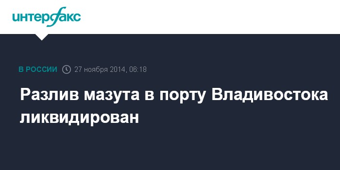 Москва. 27 ноября. INTERFAX.RU - Специалисты завершили работы по ликвидации разлива мазута в торговом порту Владивостока, сообщила пресс-служба ГУ МЧС по Приморскому краю.