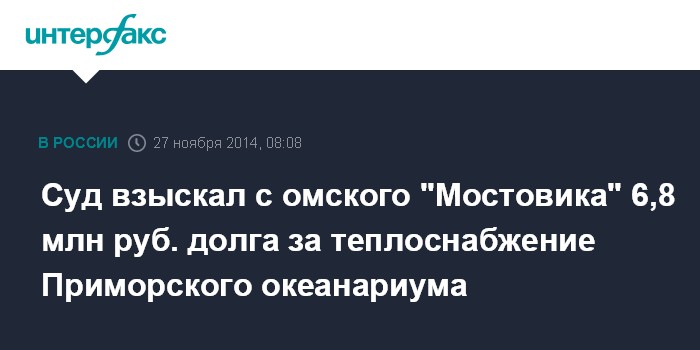 Суд взыскал с омского "Мостовика" 6,8 млн руб. долга за теплоснабжение Приморского океанариума