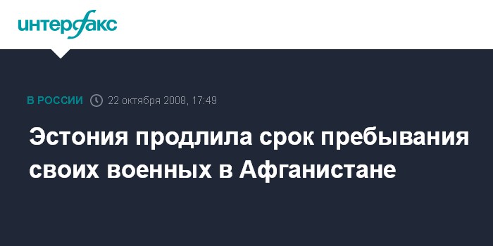 Таллин. 22 октября. INTERFAX.RU - Парламент Эстонии принял решение продлить срок пребывания военной миссии страны в Афганистане еще на год.