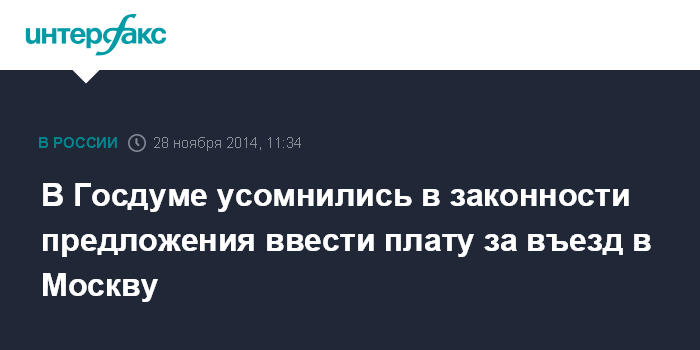 "У нас есть Конституция - закон прямого действия, единое экономическое и транспортное пространство, которые предполагают свободное перемещение товаров и услуг по всей Российской Федерации, поэтому платный въезд в Москву - абсолютный нонсенс", - подчеркнул парламентарий.