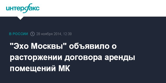 Москва. 28 ноября. INTERFAX.RU - Акционеры "Эхо Москвы" расторгли договор аренды помещений "Московского комсомольца", сообщил в пятницу "Интерфаксу" главный редактор радиостанции Алексей Венедиктов.