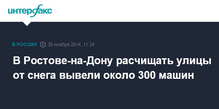 Москва. 30 ноября. INTERFAX.RU - В Ростове-на-Дону, где с часа ночи выпало уже 5 см снега, работают почти 300 единиц снегоуборочной техники, сообщили "Интерфаксу" в мэрии. "Выведены на улицы 294 единицы снегоуборочной техники, в том числе 26 мини-погрузчиков, 30 погрузчиков, 129 самосвалов, 11 автогрейдеров", - сказал собеседник агентства.