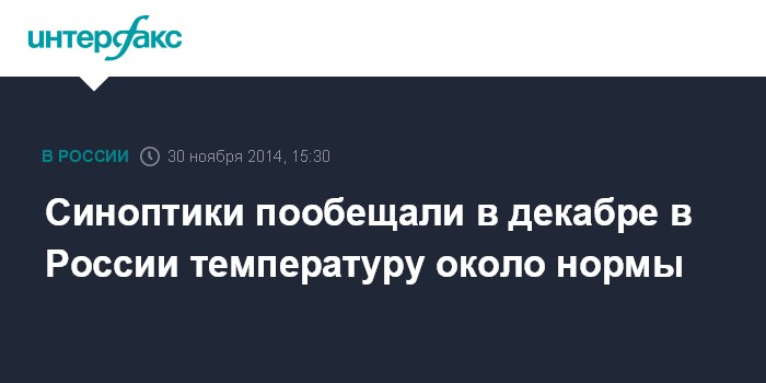 Синоптики пообещали в декабре в России температуру около нормы