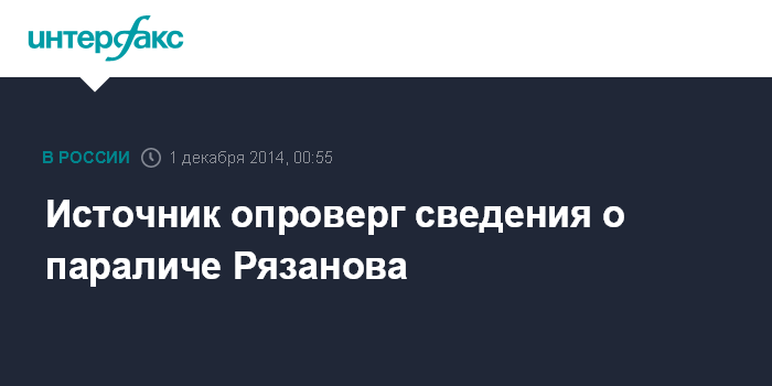Источник опроверг сведения о параличе Рязанова
