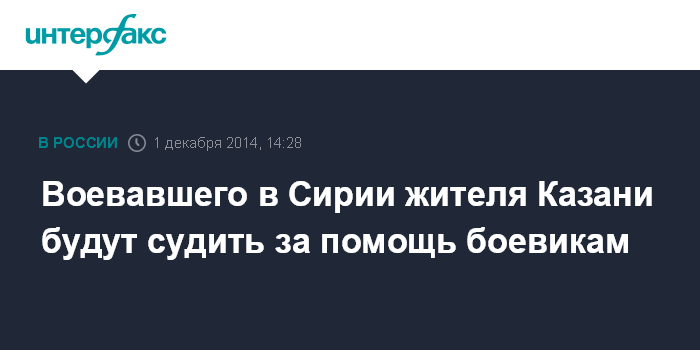 Москва. 1 декабря. INTERFAX.RU - Авиастроительный суд Казани 4 декабря начнет рассмотрение уголовного дела в отношении местного жителя, который обвиняется в участии в незаконных вооруженных формированиях на территории Сирии.