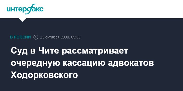 Чита. 23 октября. ИНТЕРФАКС-СИБИРЬ - Читинский областной суд приступил в четверг к рассмотрению кассационной жалобы адвокатов экс-главы НК "ЮКОС" Михаила Ходорковского на решение Ингодинского районного суда Читы.