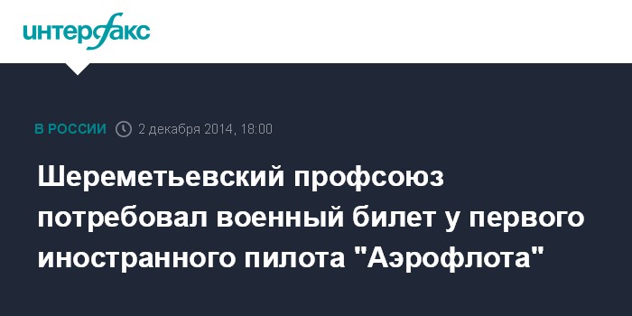 Шереметьевский профсоюз потребовал военный билет у первого иностранного пилота "Аэрофлота"