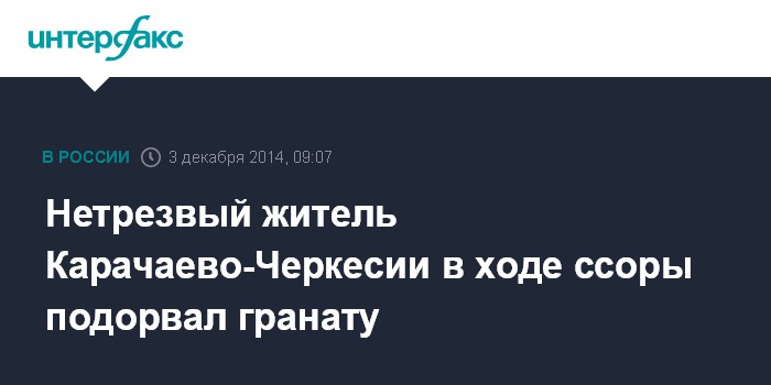 Москва. 3 декабря. INTERFAX.RU - Во вторник нетрезвый 40-летний житель Ногайского района Карачаево-Черкесии во время ссору с хозяйкой дома подорвал гранату Ф-1, в результате чего погибли двое детей, сообщил "Интерфаксу" источник в правоохранительных органах.