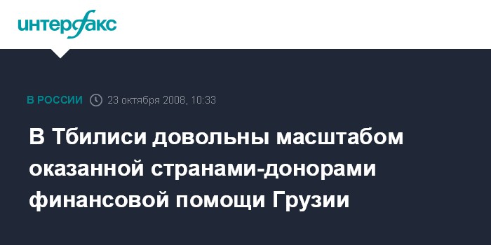 Москва. 23 октября. INTERFAX.RU - Представители грузинской правительственной делегации, вернувшиеся в Тбилиси из Брюсселя, где накануне страны-доноры выделили Грузии - 4,5 миллиарда долларов, удовлетворены масштабом финансовой помощи.