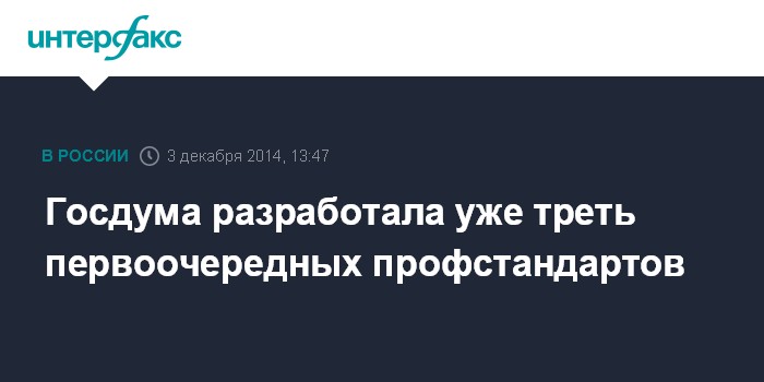 Москва. 3 декабря. INTERFAX.RU - На текущий момент из 800 первоочередных профстандартов разработано около 250, заявила глава комитета Госдумы по труду, соцполитике и делам ветеранов Ольга Баталина ("Единая Россия"), комментируя поправки ко второму чтению правительственного законопроекта.