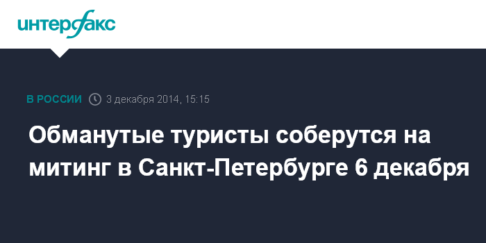 Обманутые туристы соберутся на митинг в Санкт-Петербурге 6 декабря