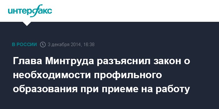 Глава Минтруда разъяснил закон о необходимости профильного образования при приеме на работу