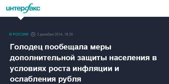 Голодец пообещала меры дополнительной защиты населения в условиях роста инфляции и ослабления рубля