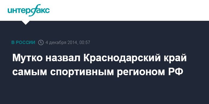 Москва. 4 декабря. INTERFAX.RU - Кубань стала регионом, обладающим самой крупной спортивной базой, заявил министр спорта России Виталий Мутко на торжественной церемонии награждения лауреатов национальной премии в области физической культуры и спорта за 2014 год.