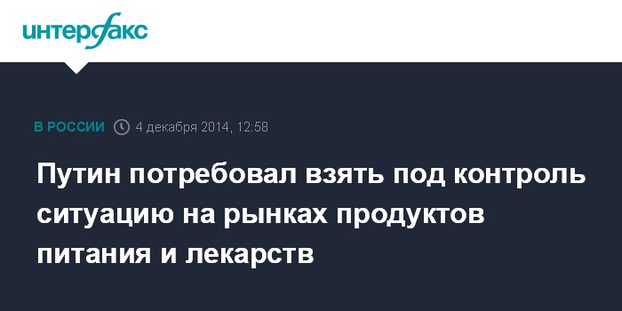Путин потребовал взять под контроль ситуацию на рынках продуктов питания и лекарств