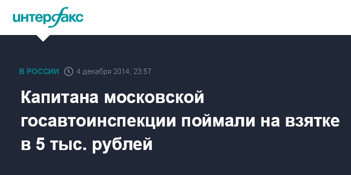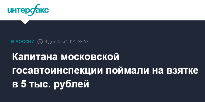 Капитана московской госавтоинспекции поймали на взятке в 5 тыс. рублей