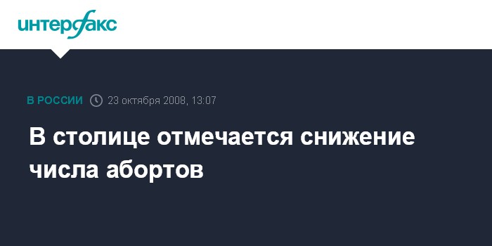 Москва. 23 октября. INTERFAX.RU - В Москве количество абортов за последние два года снизилось в 3,5 раза, сообщила "Интерфаксу" первый заместитель мэра в правительстве столицы, руководитель комплекса социальной сферы Людмила Швецова в четверг.