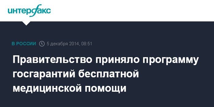 Москва. 5 декабря. INTERFAX.RU - Премьер-министр РФ Дмитрий Медведев подписал постановление "О программе государственных гарантий бесплатного оказания гражданам медицинской помощи на 2015 год и на плановый период 2016 и 2017 годов", сообщает в пятницу официальный сайт правительства России.