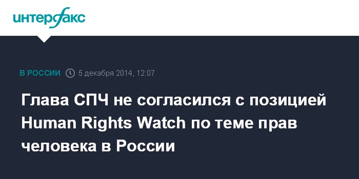 Глава СПЧ не согласился с позицией Human Rights Watch по теме прав человека в России
