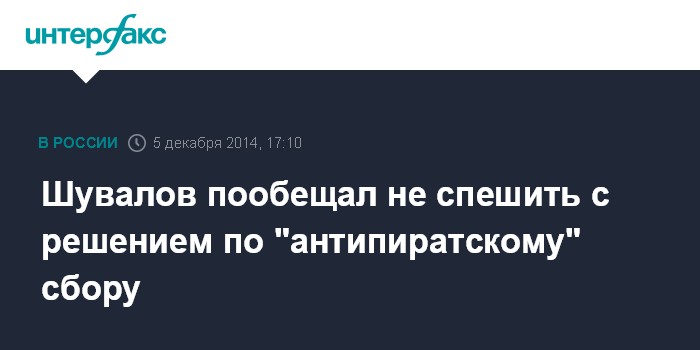 Шувалов пообещал не спешить с решением по "антипиратскому" сбору