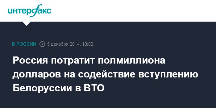 Россия потратит полмиллиона долларов на содействие вступлению Белоруссии в ВТО