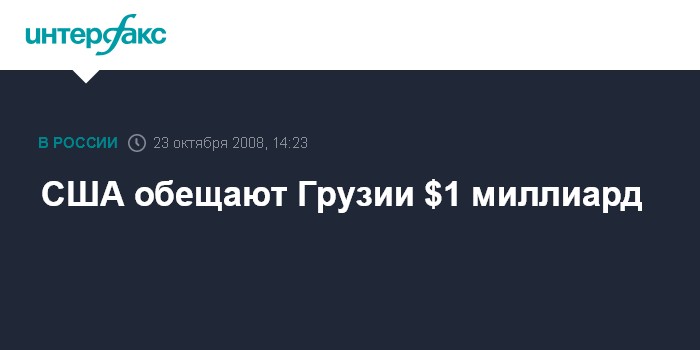 Москва. 23 октября. INTERFAX.RU - Соединенные Штаты в 2008-2009 г. предоставят Грузии финансовую помощь в размере $1 млрд для ликвидации последствий конфликта в Южной Осетии, сообщила администратор программы USAID Генриетта Фор, выступая в среду в американской миссии в Брюсселе.