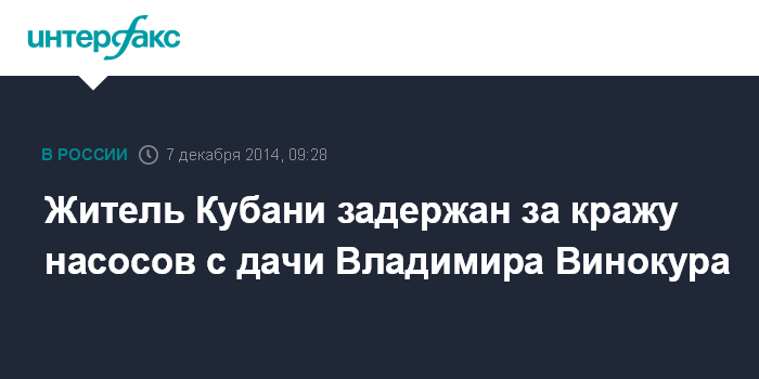Житель Кубани задержан за кражу насосов с дачи Владимира Винокура