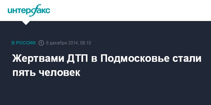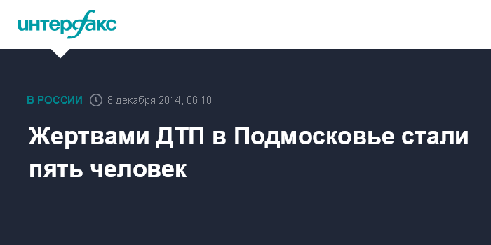 Москва. 8 декабря. INTERFAX.RU - Пять человек погибли в результате ДТП на юго-востоке Московской области. Об этом "Интерфаксу" сообщили в пресс-службе областного УГИБДД.