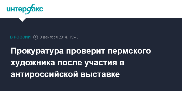 Москва. 8 декабря. INTERFAX.RU - Прокуратура проверит информацию о художнике из Перми, который стал участником антироссийской выставки "Убей колорада" в Киеве, сообщил в понедельник агентству "Интерфакс" сотрудник регионального надзорного ведомства.